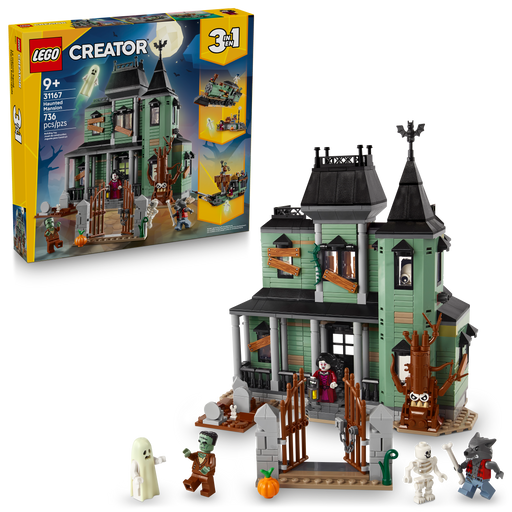Product Code: 31167Ages: 9+Pieces: 736 Play out scary stories with the LEGO® Creator 3in1 Haunted Mansion (31167) house building toy. The 2-story h...