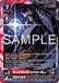 [Raid] [Reboot] [Blocker] [On Play] [When Digivolving] Delete 1 of your opponent's play cost 7 or lower Digimon or Tamers. [All Turns] While your opponent has a Digimon with 13000 DP or more, your opponent's Digimon's effects don't affect this Digimon, and it gets +3000 DP. ACE Overflow "-4" (As this card moves from the field or under a card to an area other than those, lose 4 memory.) |