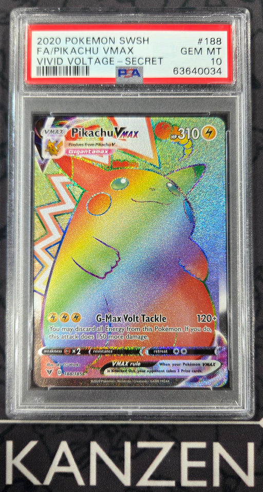 KanZenGamesOriginal price $575.00 - Original price $575.00Original price$575.00$575.00 - $575.00Current price $575.00| /Only 1 left!PSA 10 - Pikachu VMAX - Vivid Voltage - #188 - 63640034