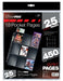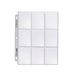 Ultra PRO Silver Series Pages in eighteen-pocket style. This page has 9 pockets per side in a toploading style. Archival quality pages that holds standard sized cards with 2-1/2" X 3-1/2" dimensions or smaller. Pages are clear on all sides and fit in our standard-size 3-ring albums. 25 pages per pack. Made with acid-free, non-PVC polypropylene film. High clarity to present your collectible cards in its true colors. Solid seals promote lay flat quality of the page. Toploading - cards are inserted in a vertical fashion from the top of the pocket. Made at Ultra PRO's California, USA factory. Pre-punched 3-holes on the spine to fit in 3-ringed albums.